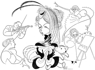 Contributes a publicity drawing for the original release of Singin’ in the Rain.