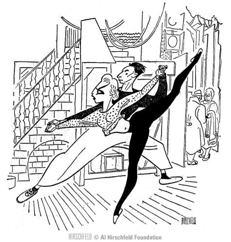 Vera Zorina rehearses with George Balanchine backstage at Louisiana Purchase, 1940